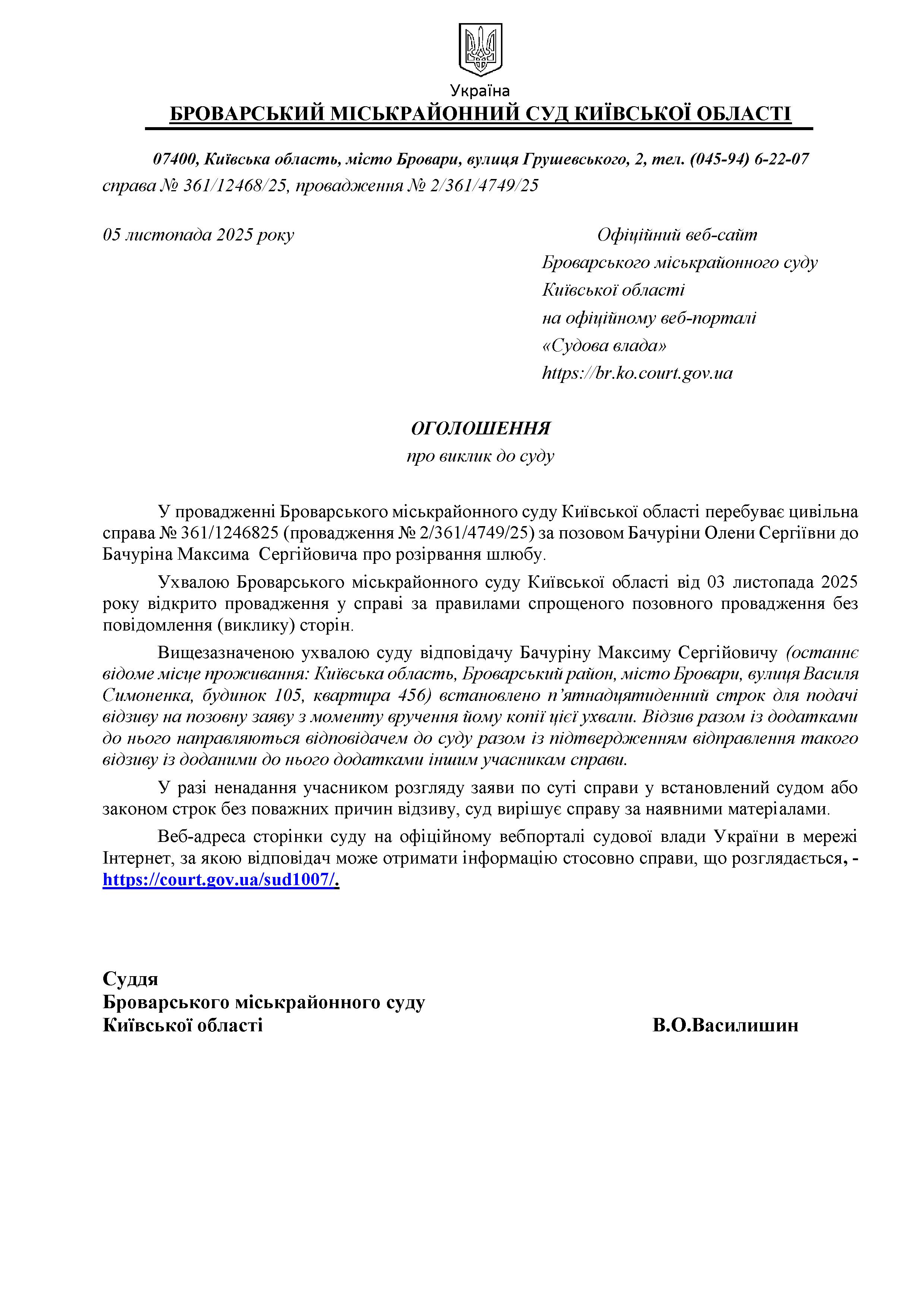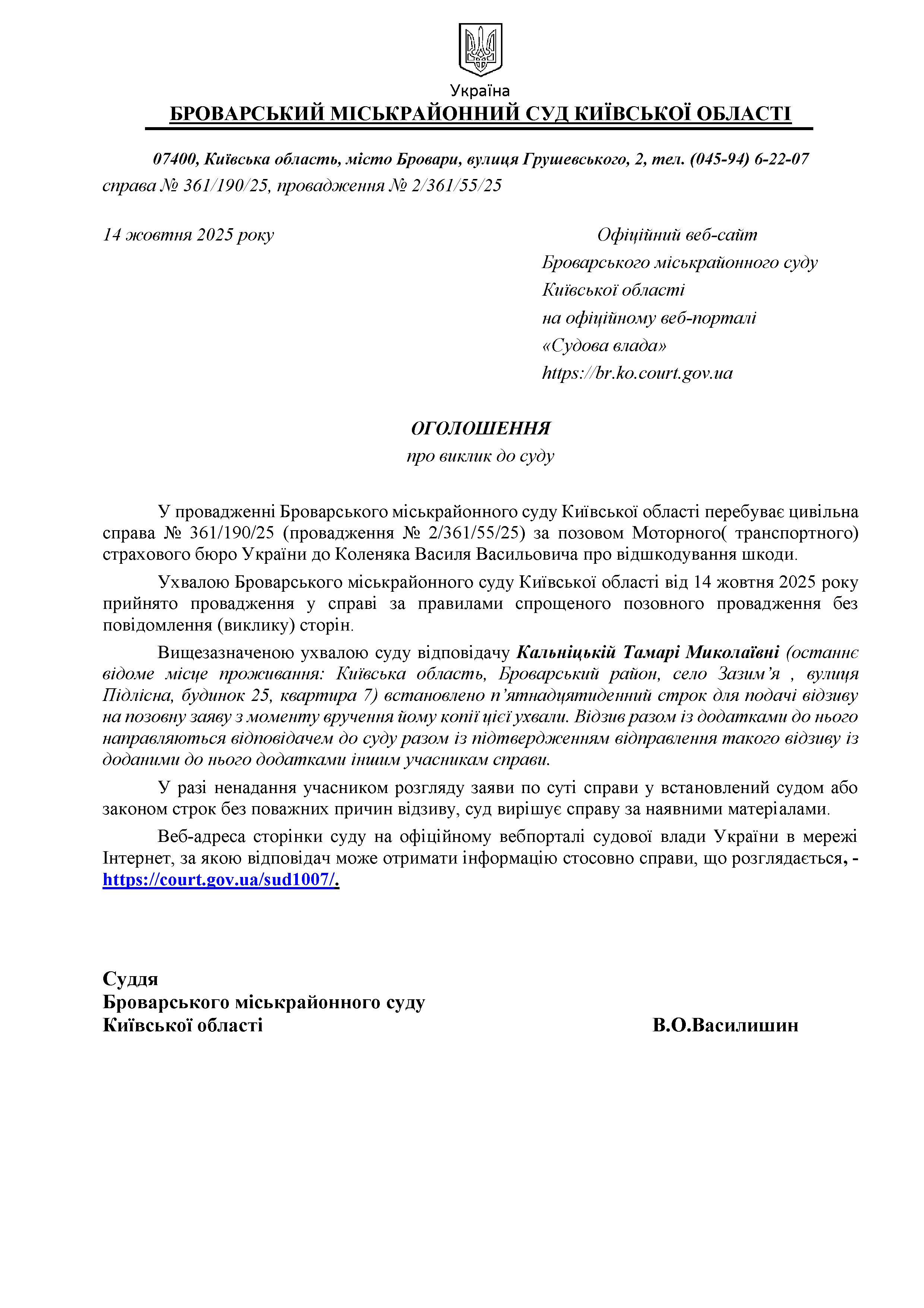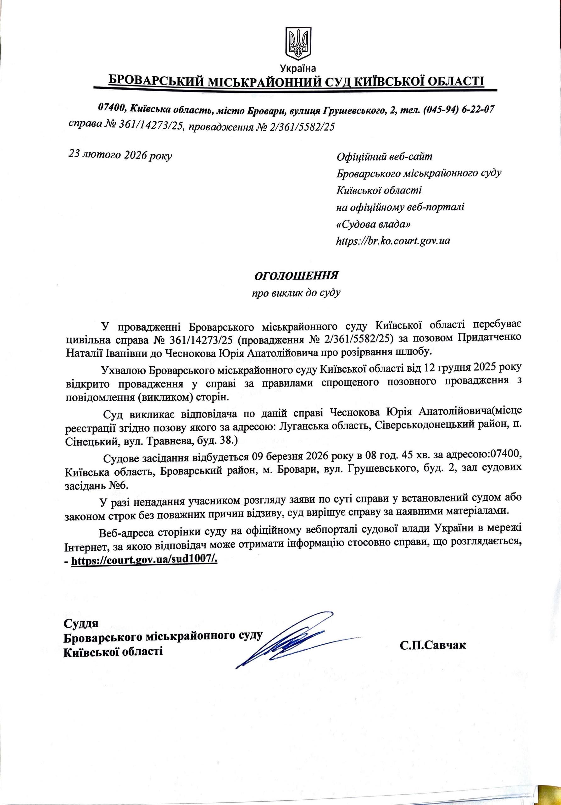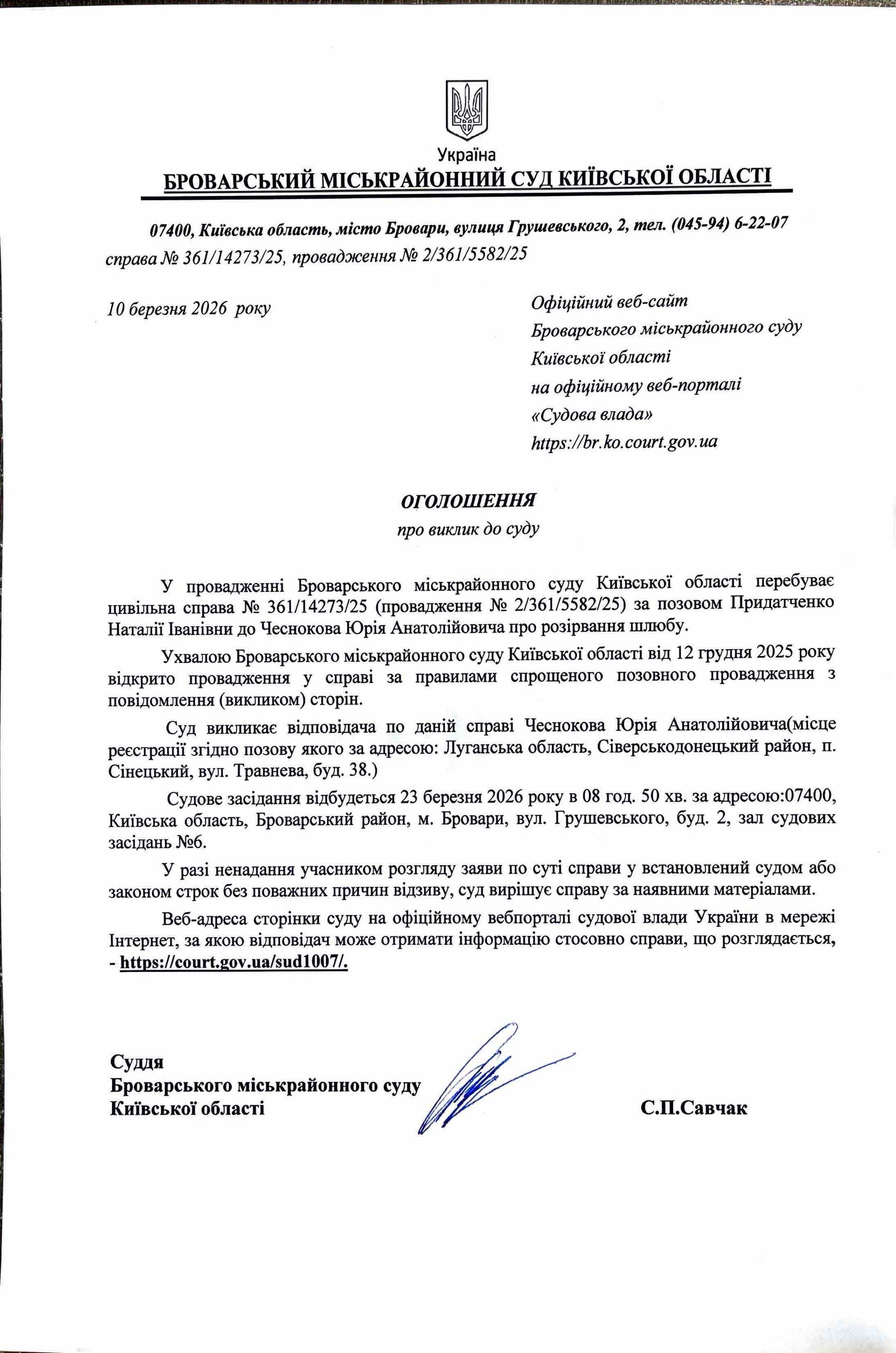 Броварський міськрайонний суд Київської області