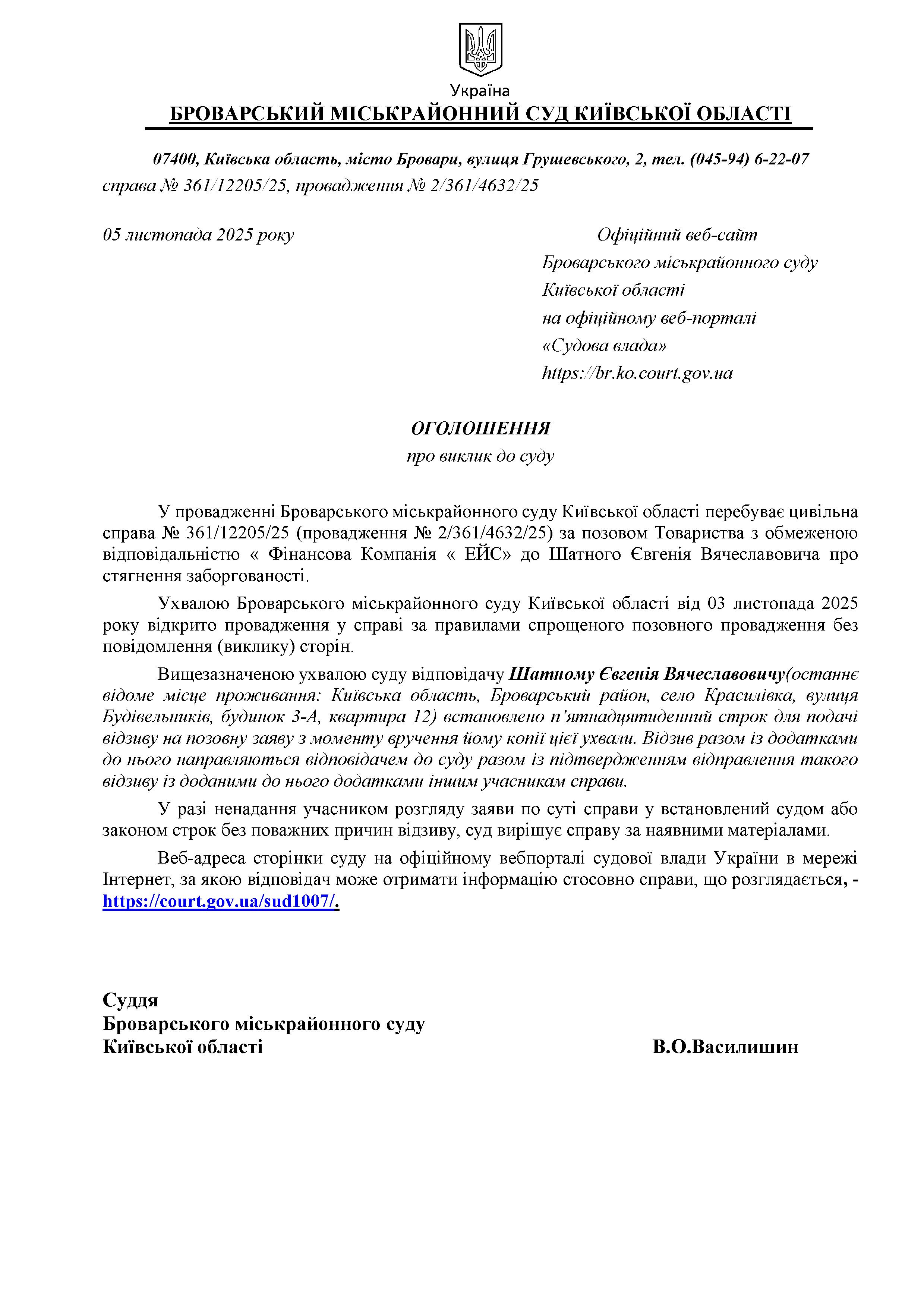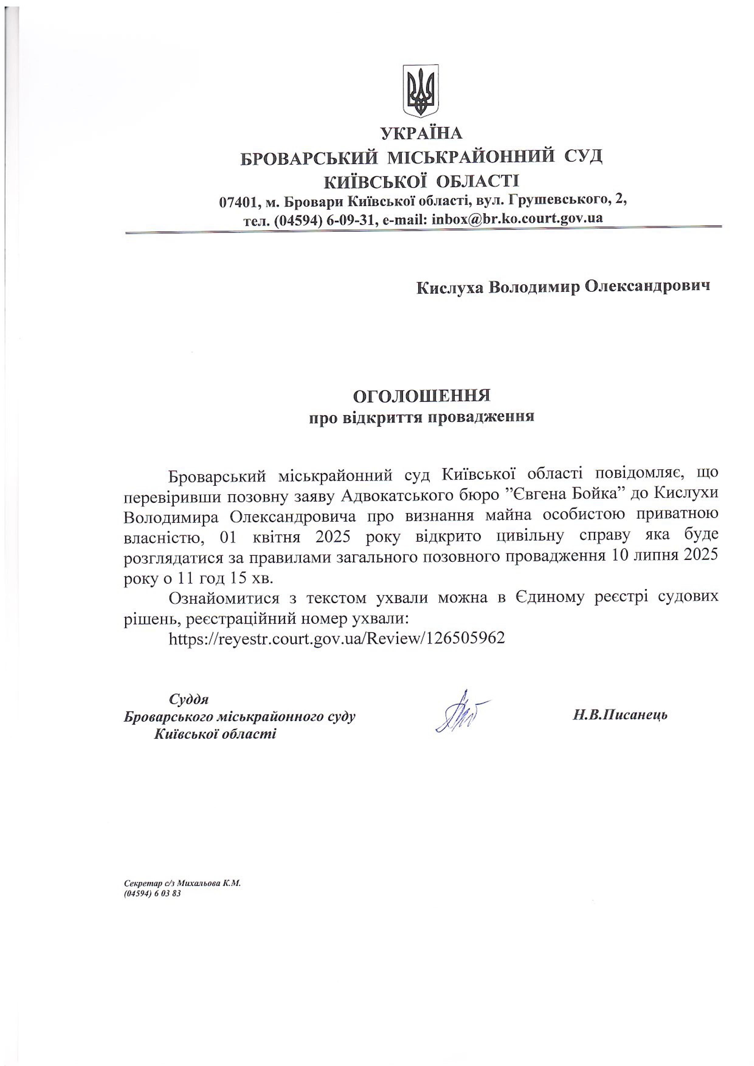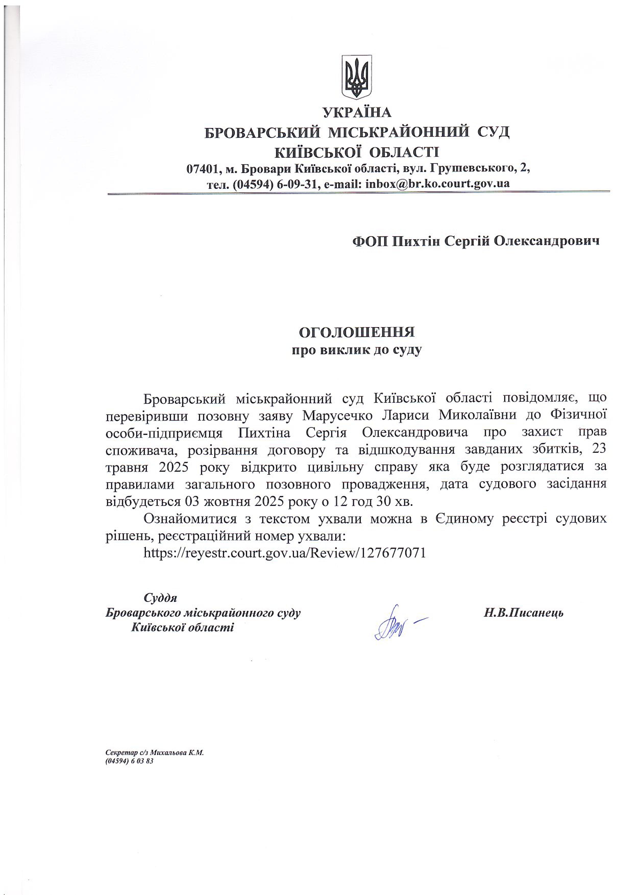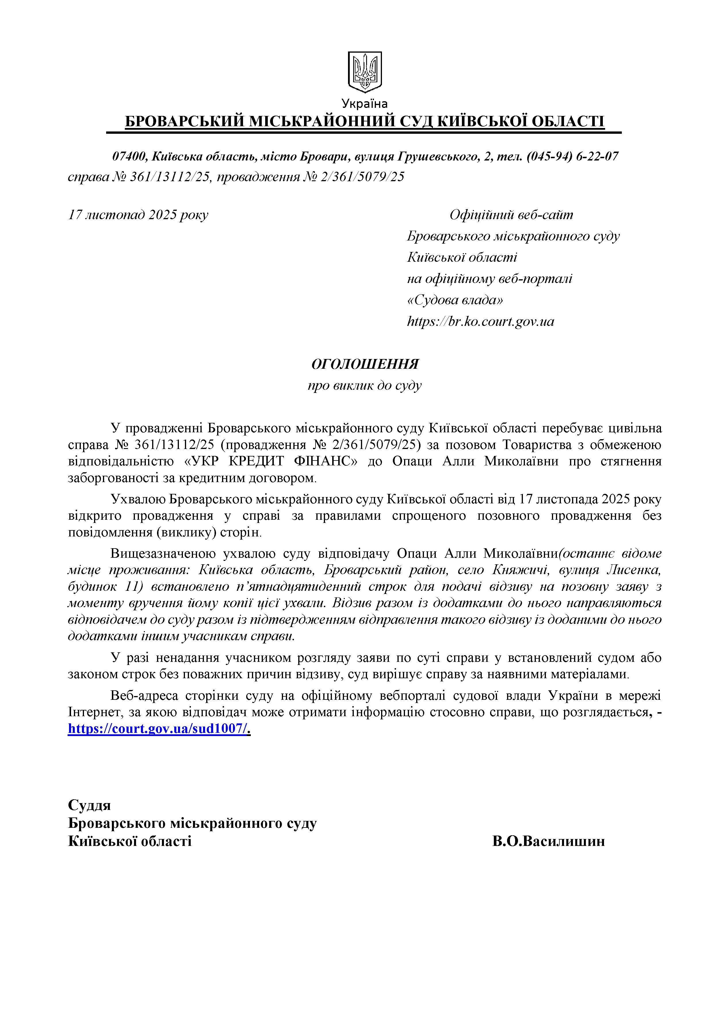 Броварський міськрайонний суд Київської області