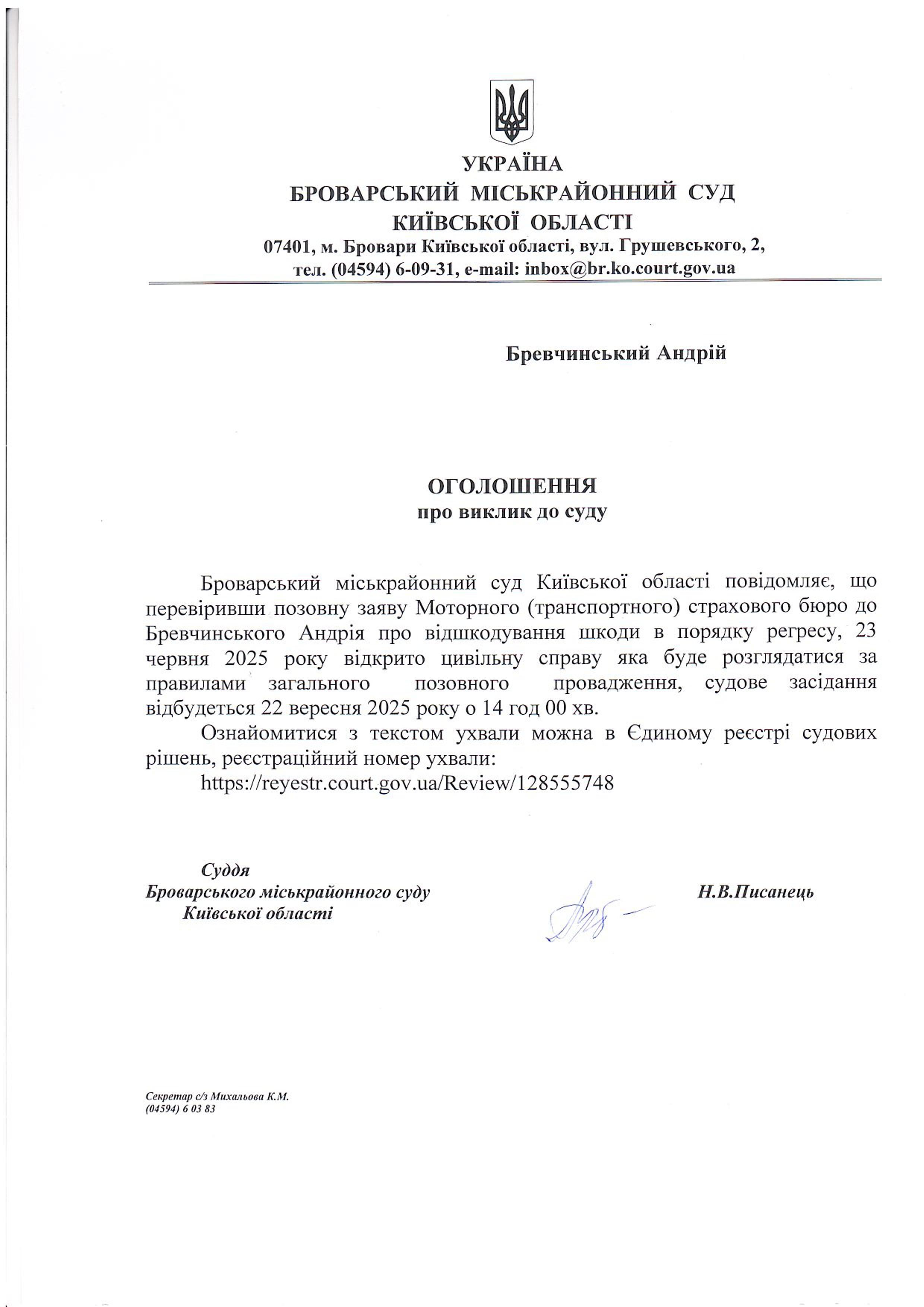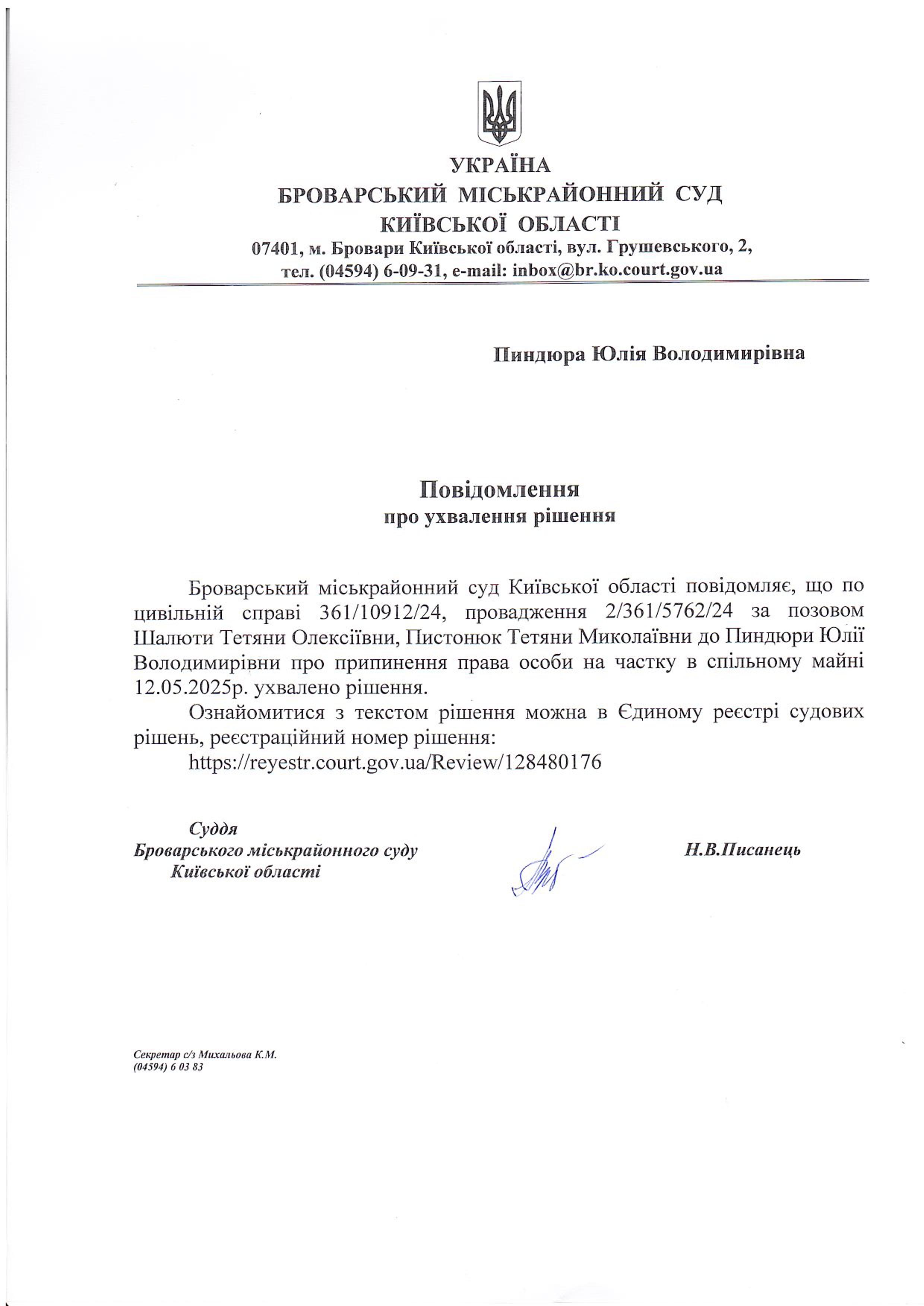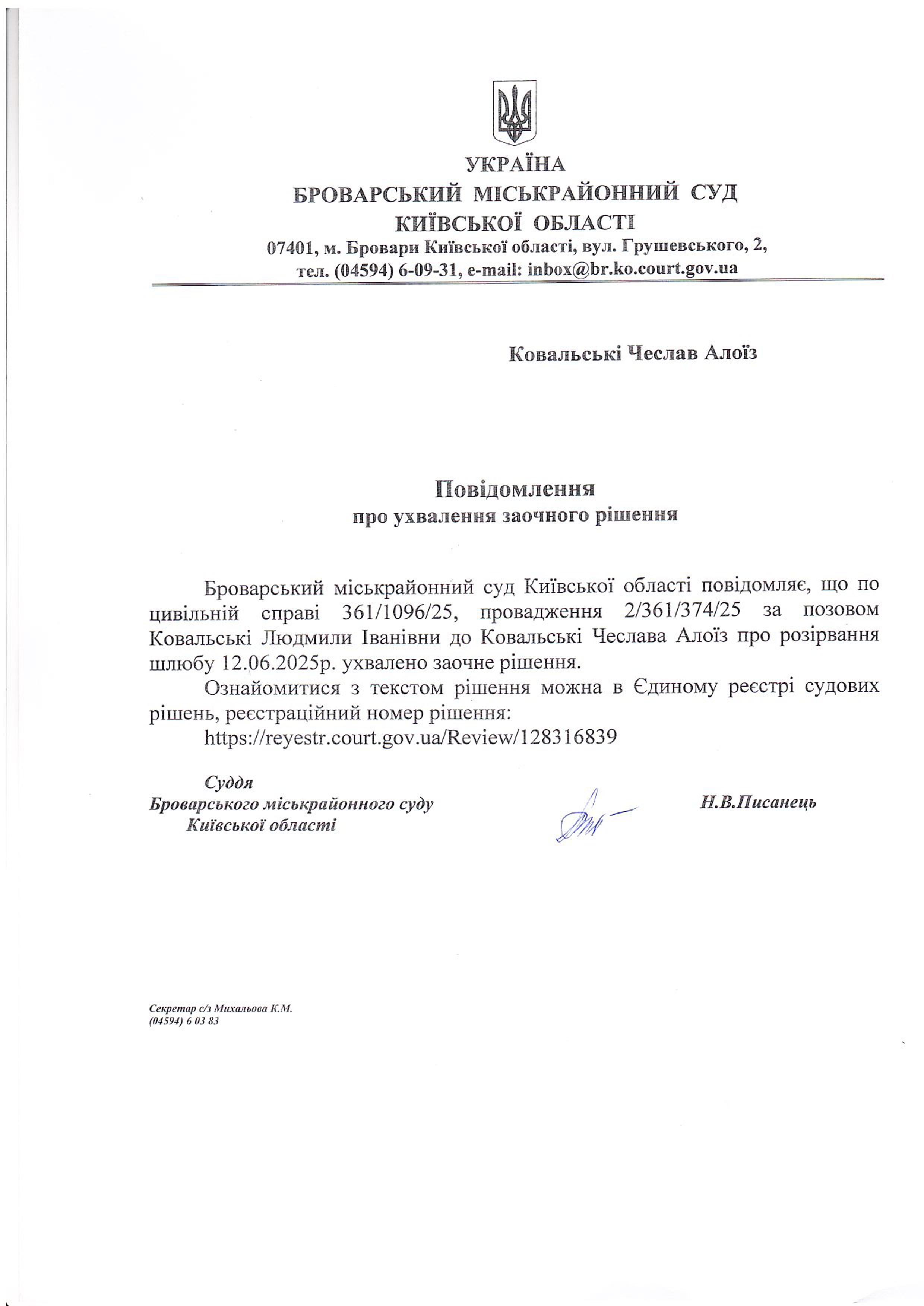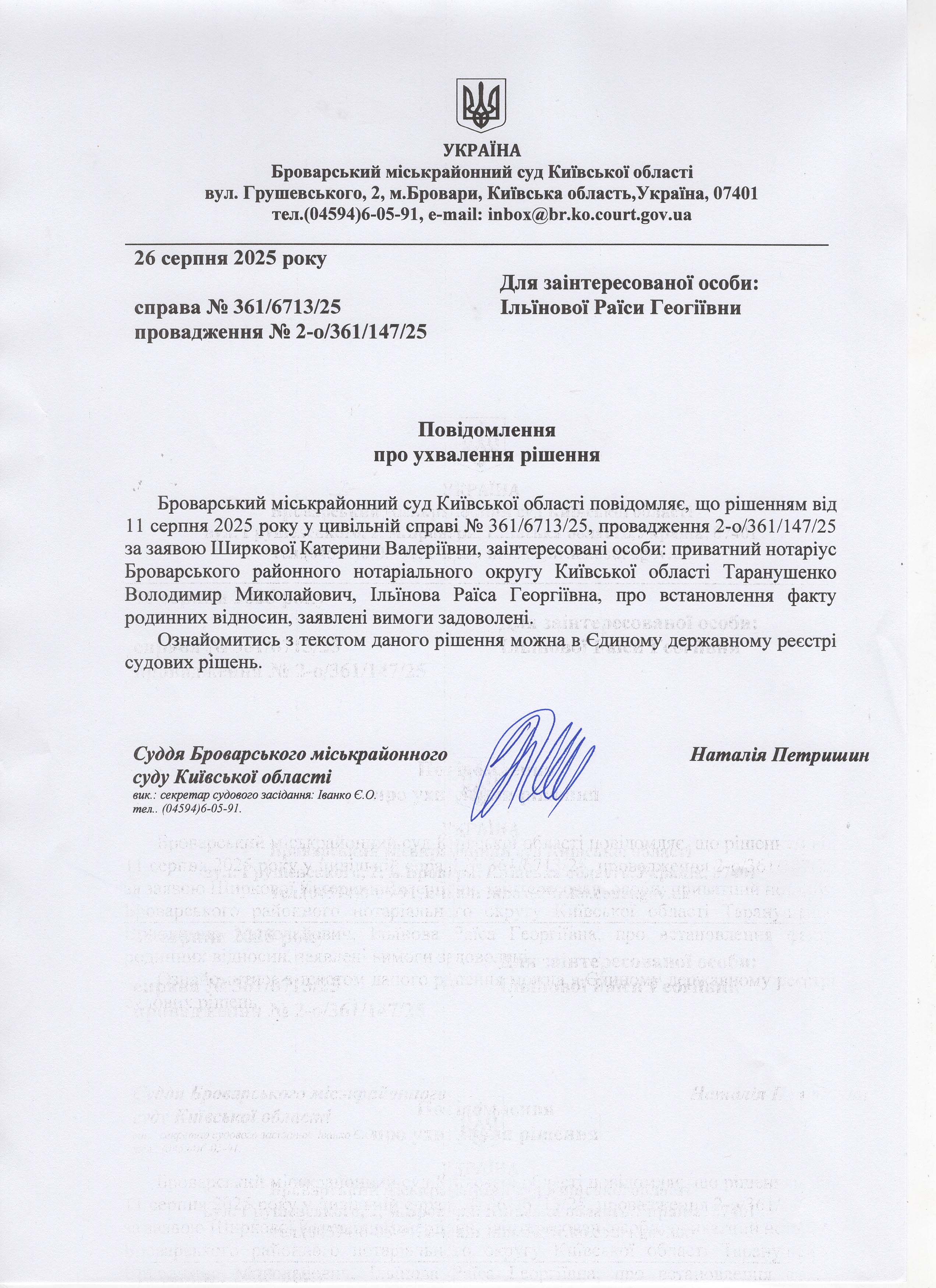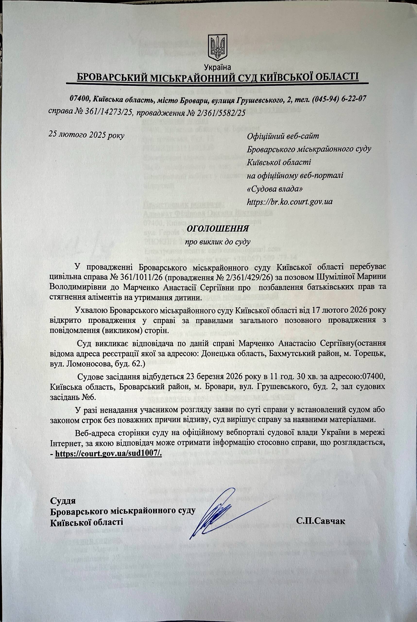 Броварський міськрайонний суд Київської області