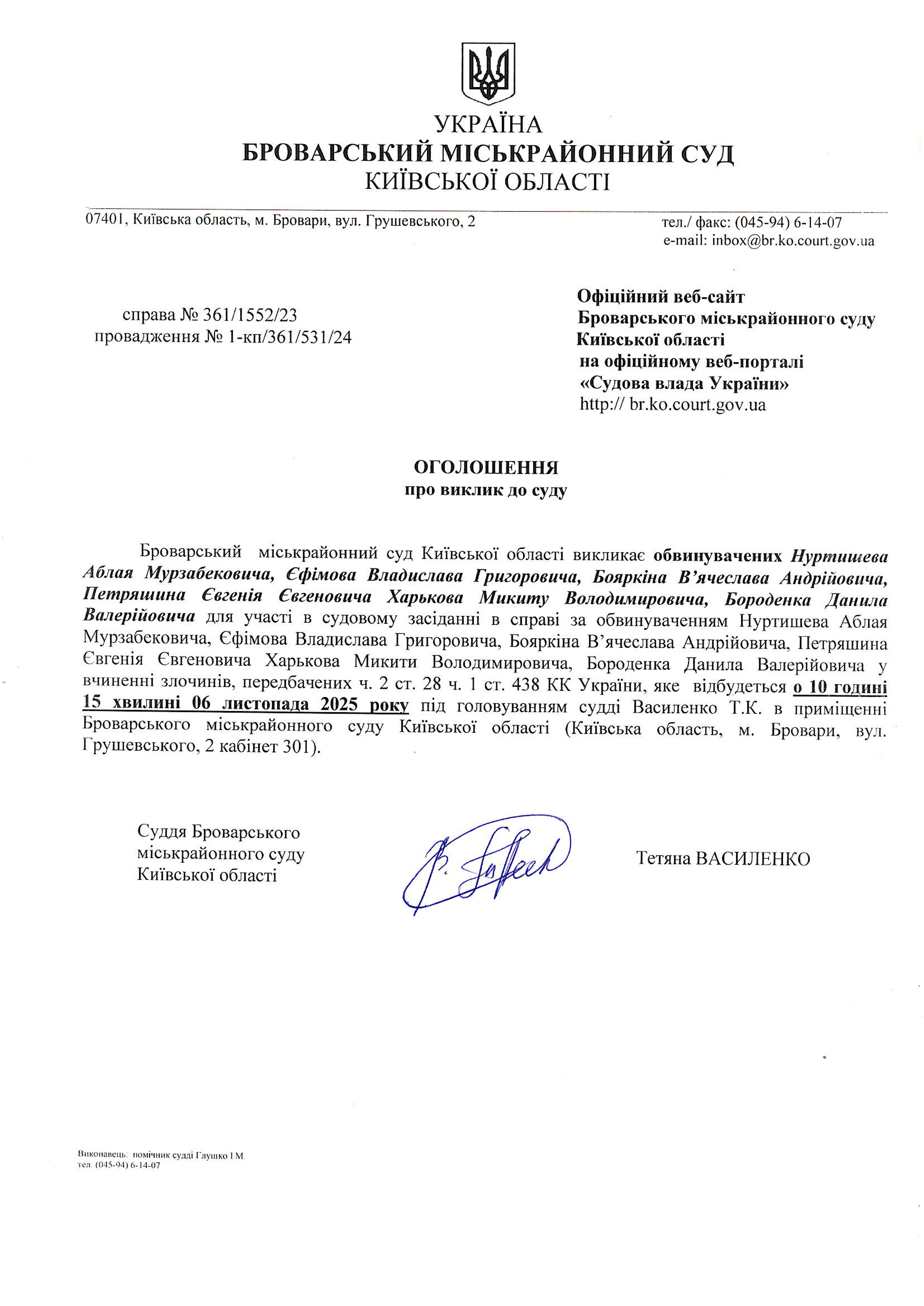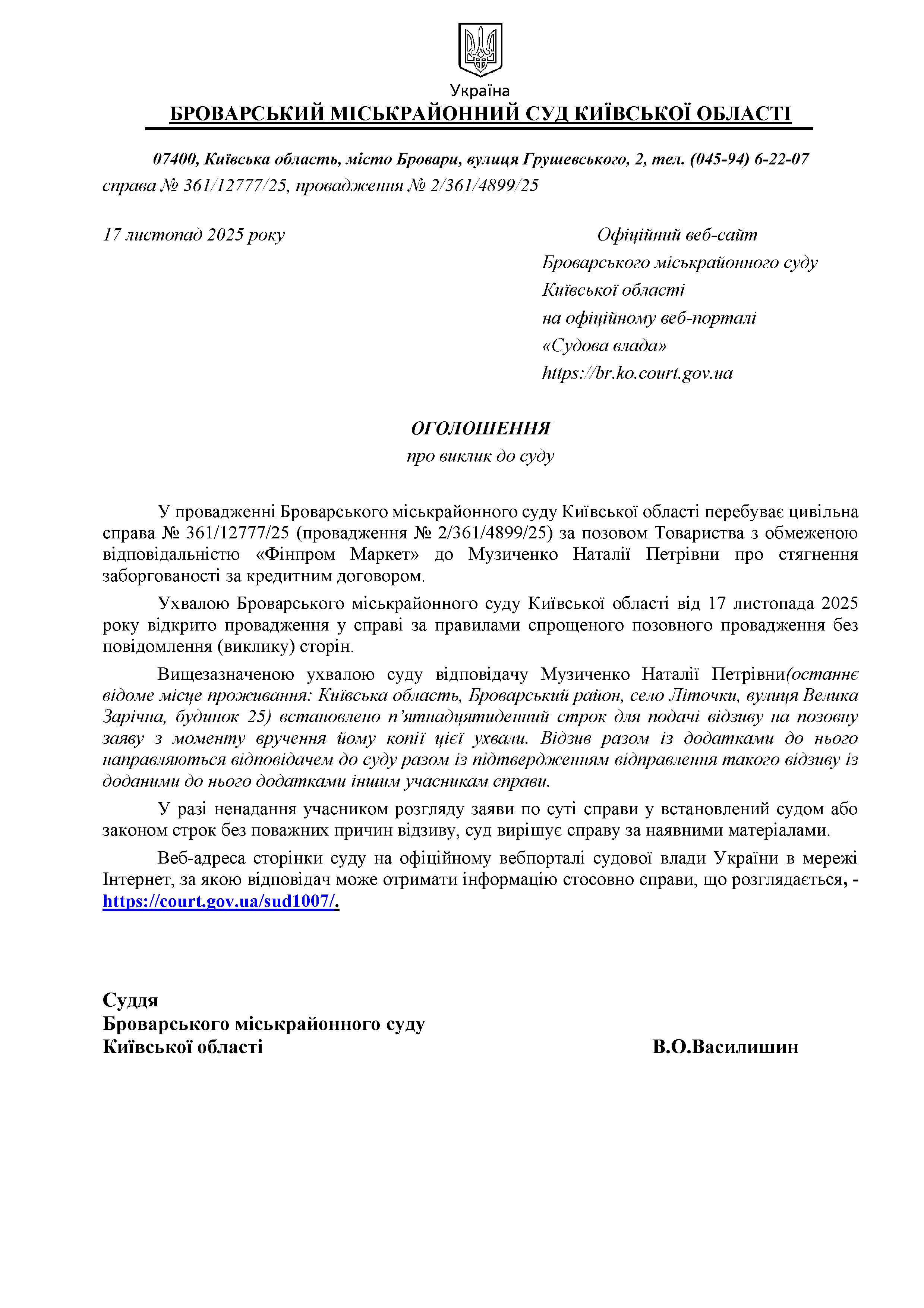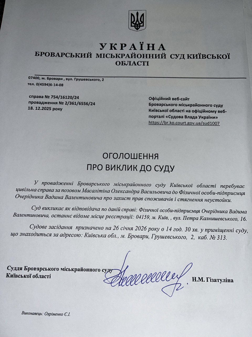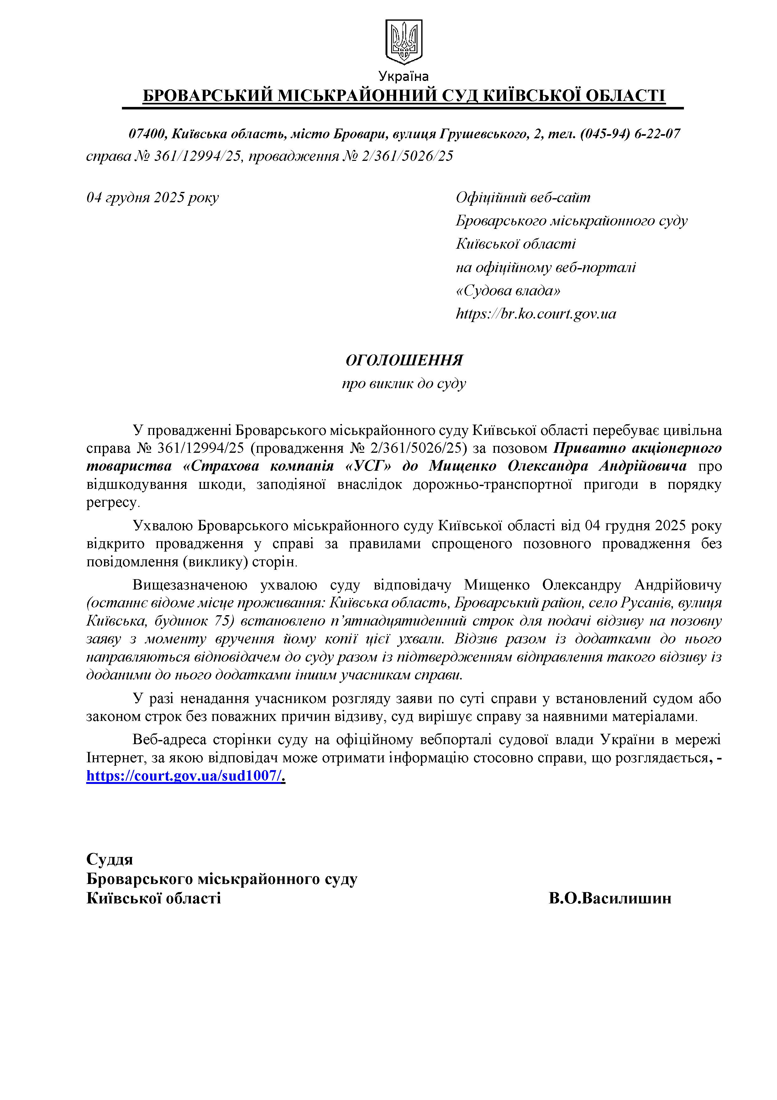 Броварський міськрайонний суд Київської області