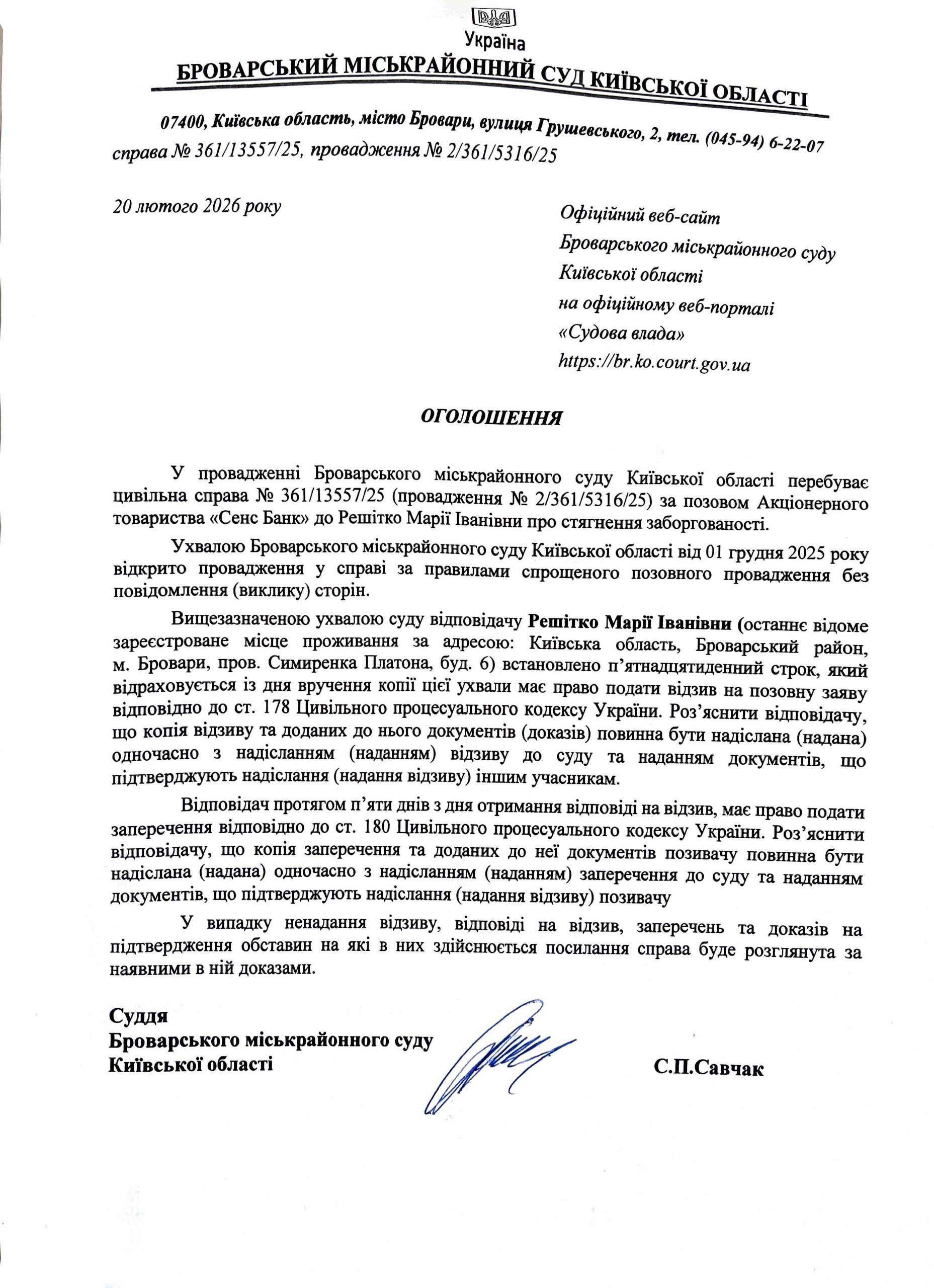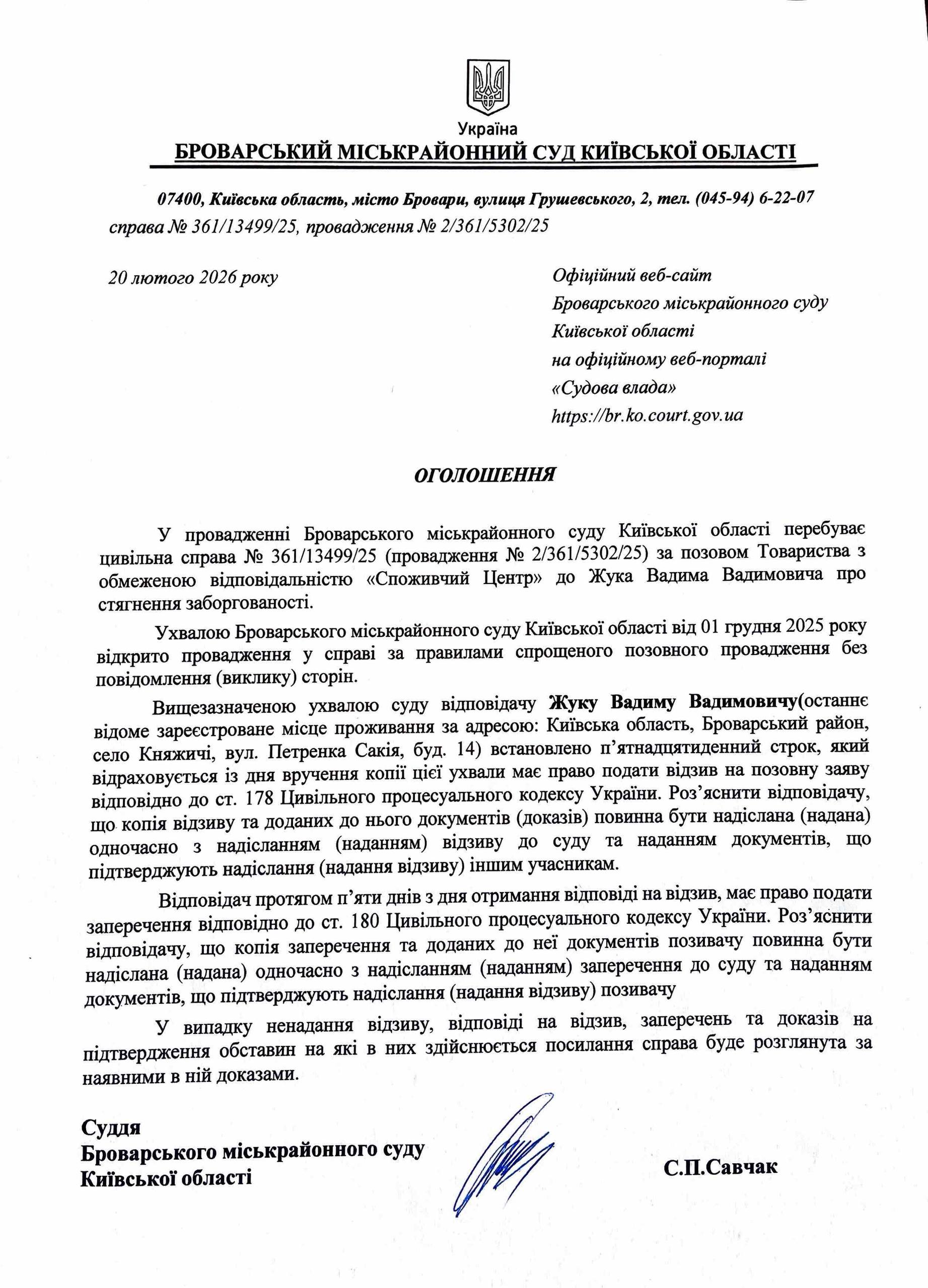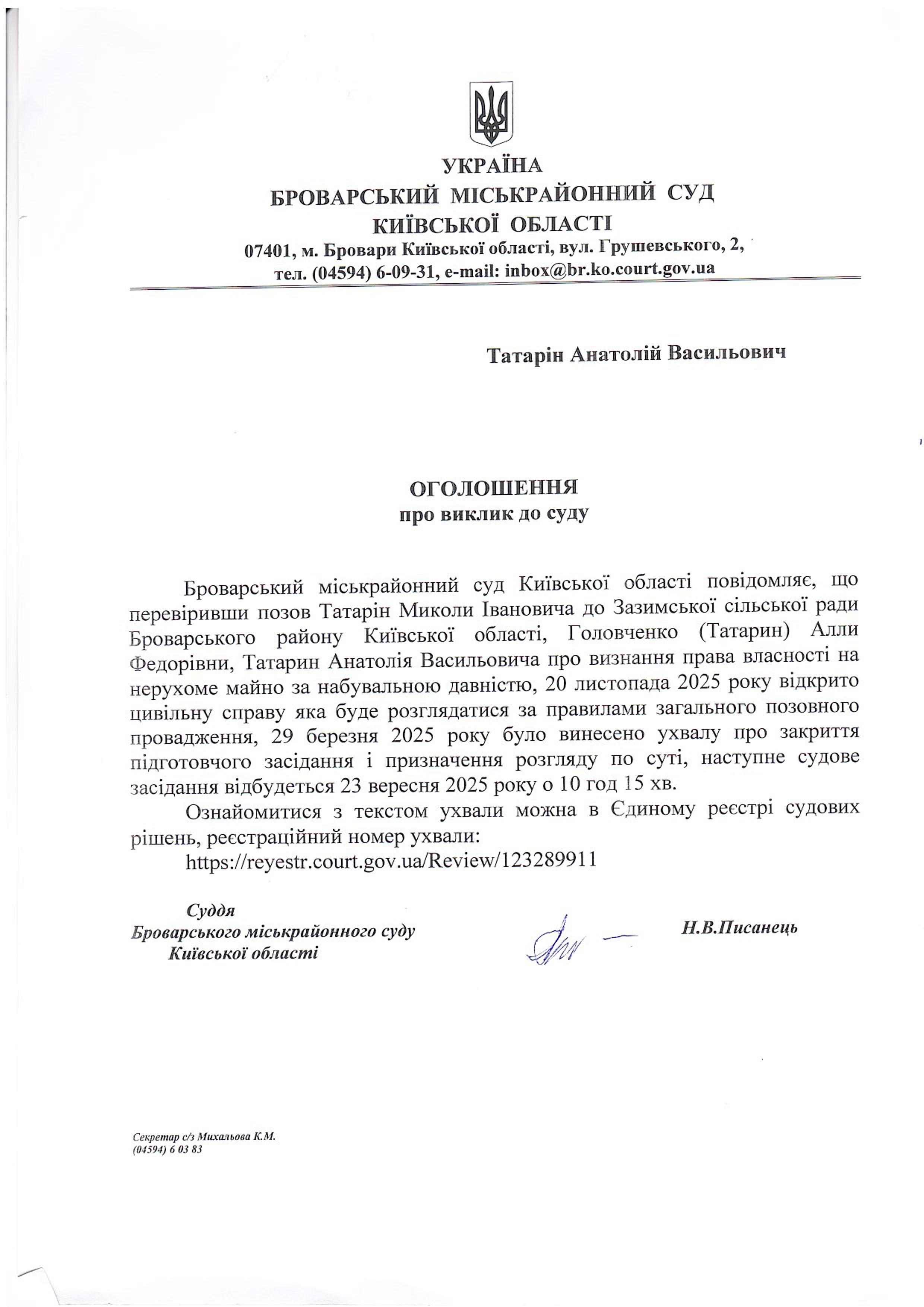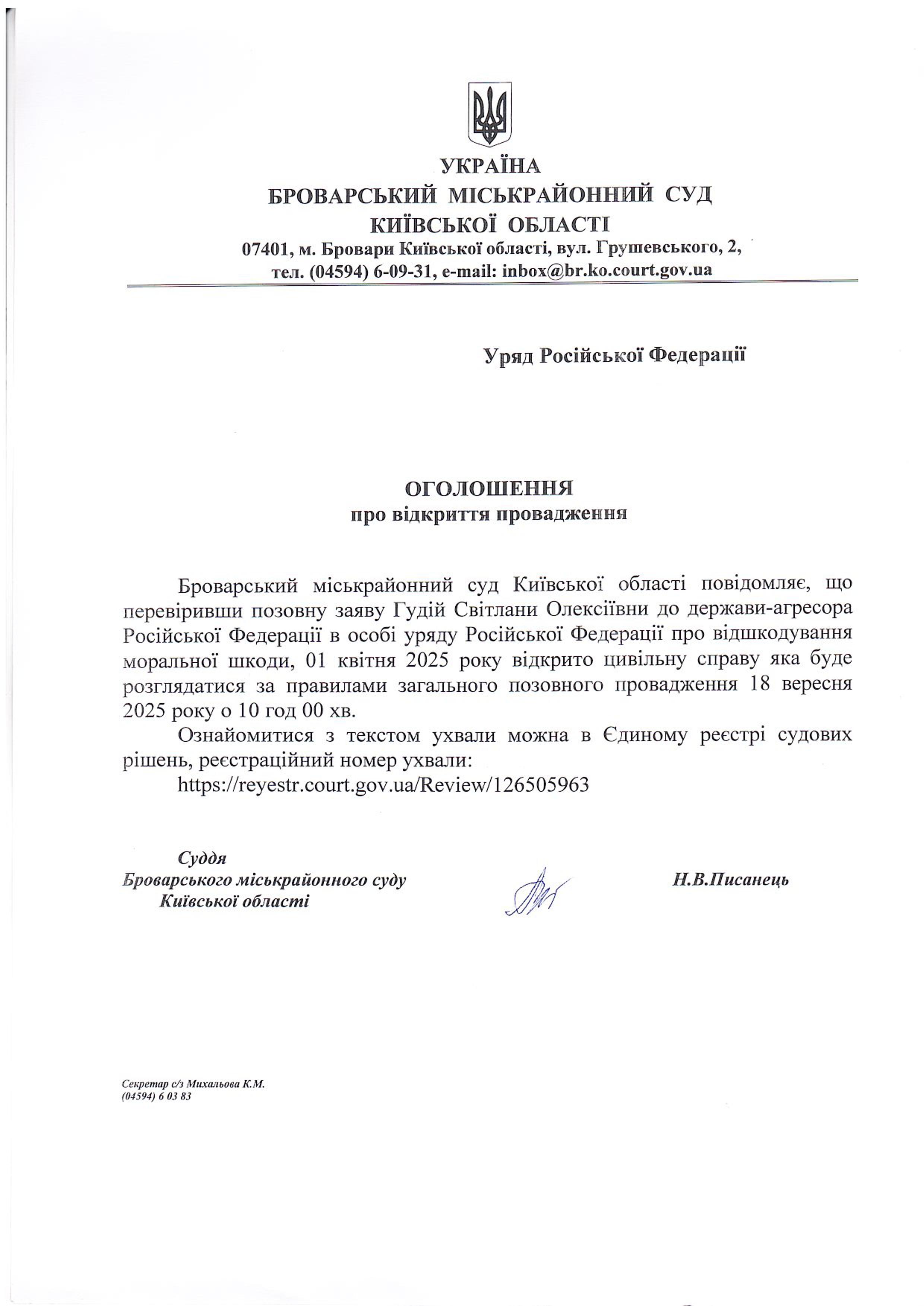 Броварський міськрайонний суд Київської області