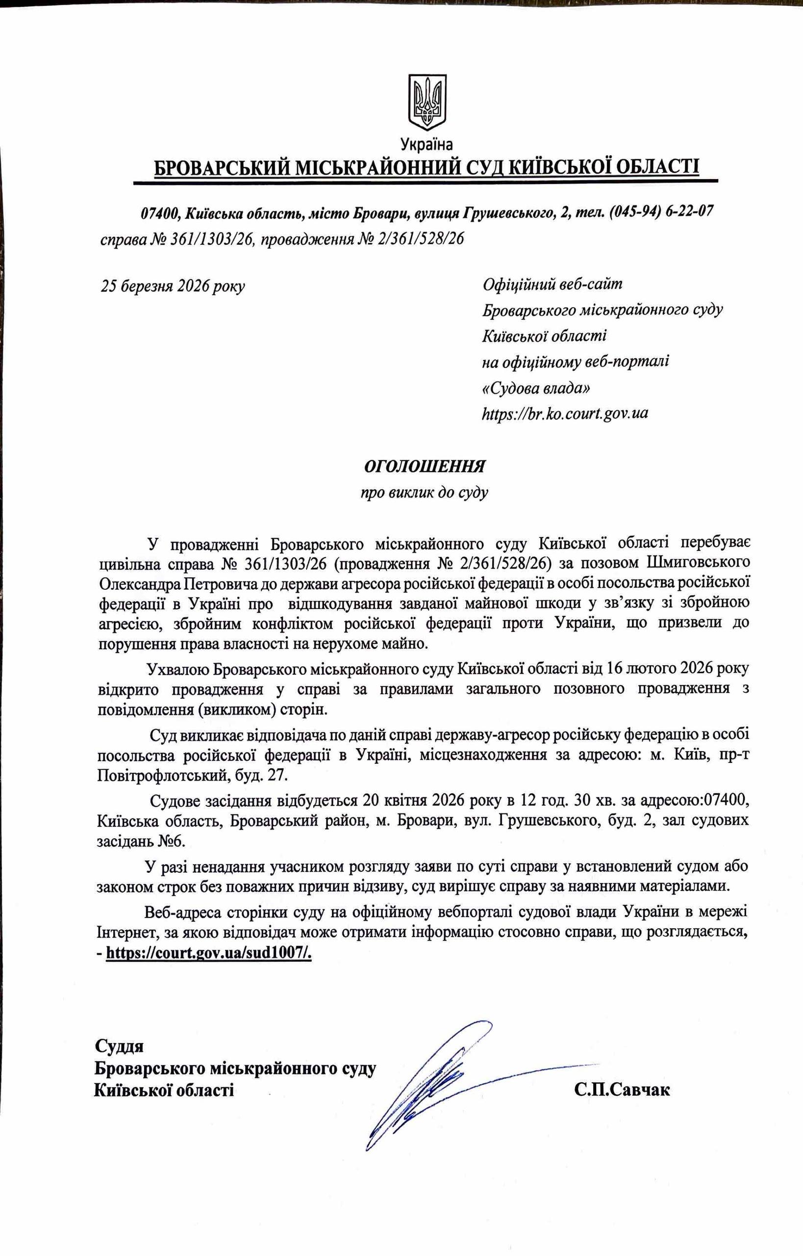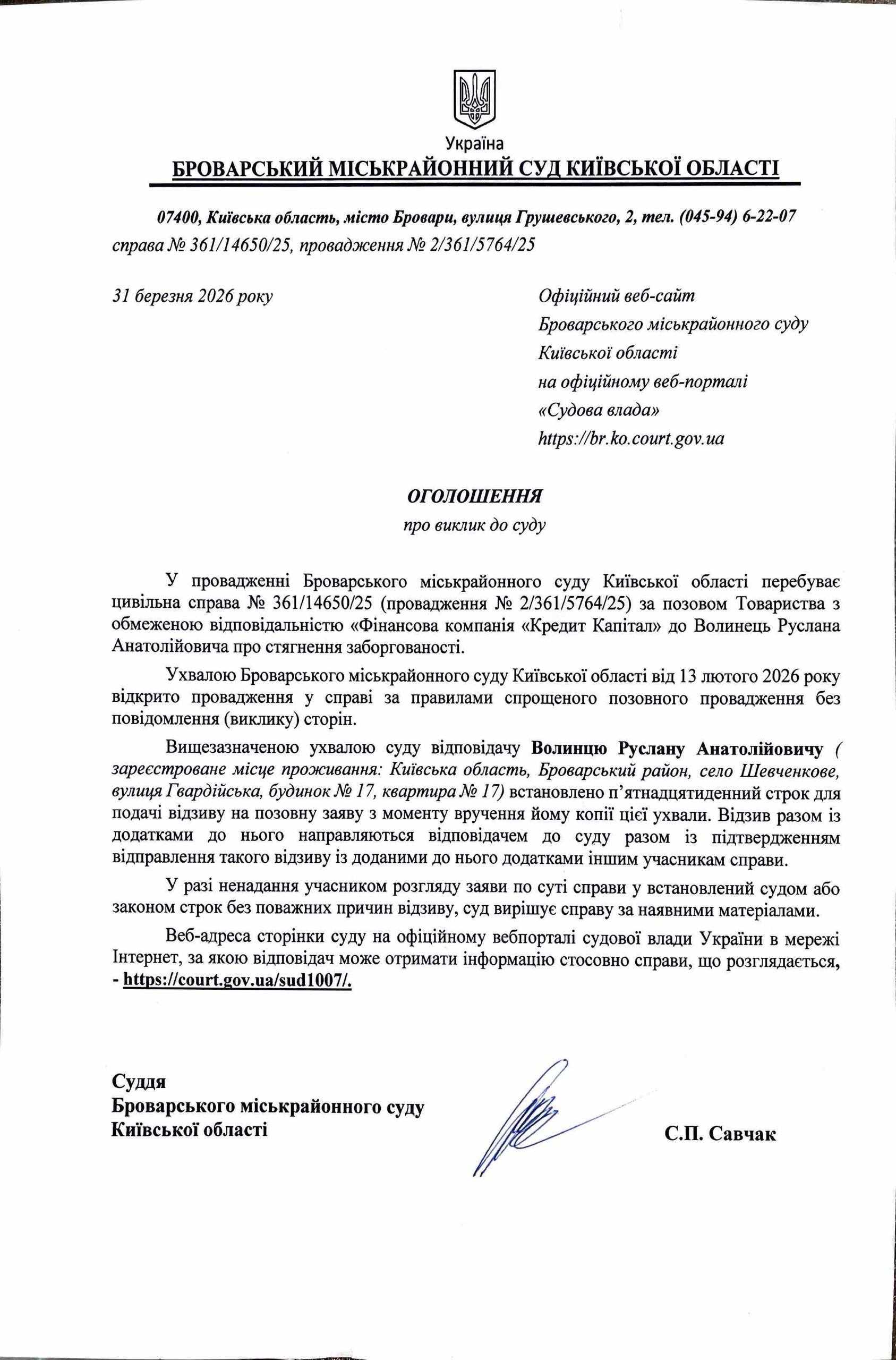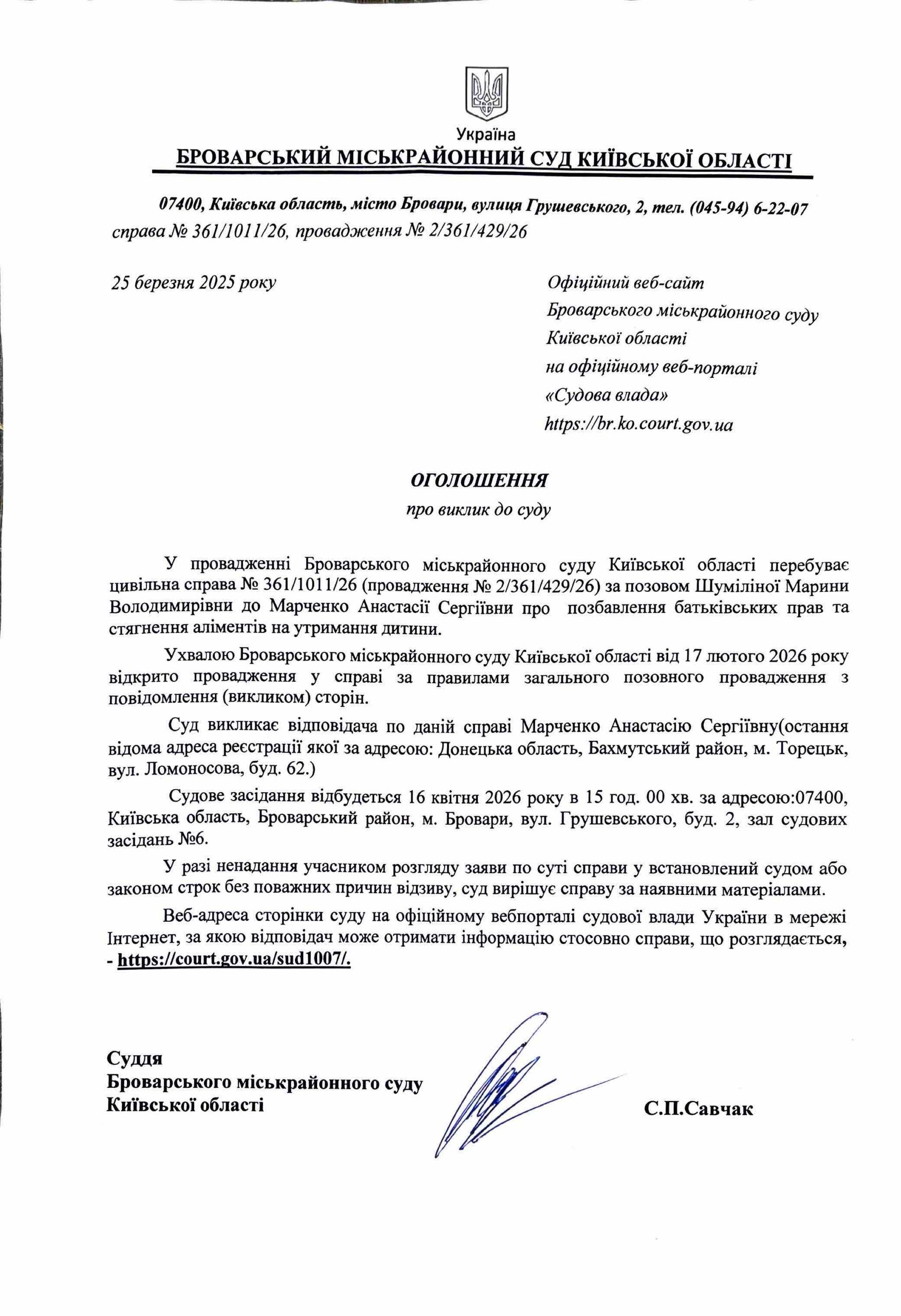Броварський міськрайонний суд Київської області