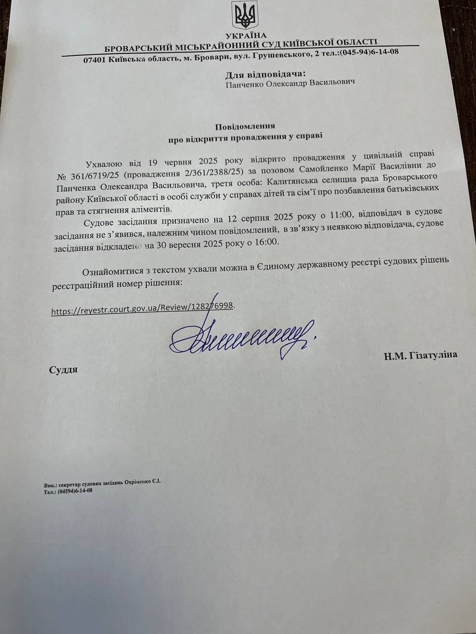 Повідомлення про відкриття провадження у справі 361/6719/25