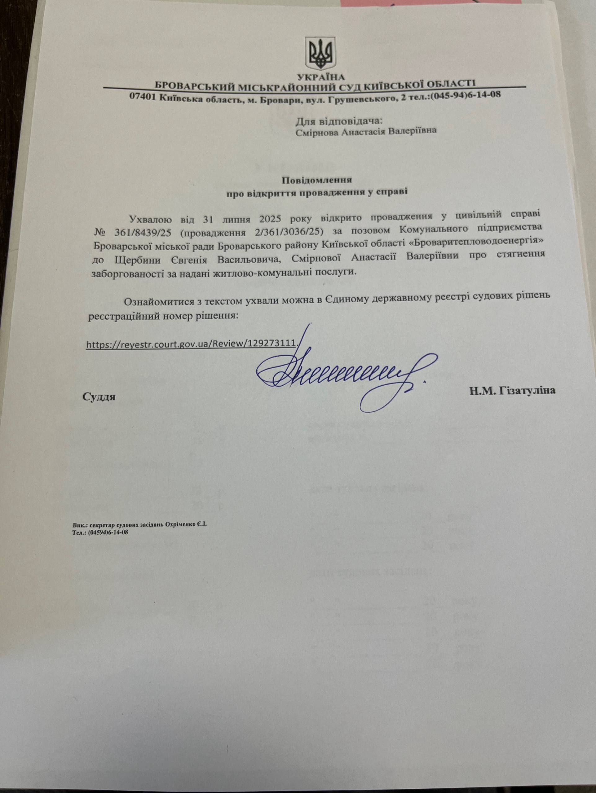 Повідомлення про відкриття провадження у справі 361/8439/25